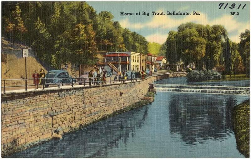 Edison told others that he had been to Bellefonte before, in 1926, and was taken to see the big fish at the Big Spring. He asked if the fish were still there and the next morning, he had the chauffer pull over along Water Street. They saw Charlie Brachbill feeding the trout chopped beef. Brachbill offered Mrs. Edison some beef to throw and she took a turn throwing the beef to the fish.